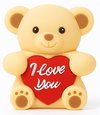 L' ours en peluche beige tient un cœur rouge avec le texteJe t'aime , ce qui en fait à la fois une jolie décoration et un gadget fonctionnel. Un souvenir parfait pour les couples, les amis ou la famille.