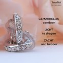 Une paire de boucles d'oreilles Traveller élégante et intemporelle. Ces demi-boucles d'oreilles plaquées rhodium sont ornées de diamants Swarovski et vont avec tout. Les boucles d'oreilles mesurent 15 mm de haut, 3 mm de large et pèsent chacune environ 2 grammes. Le système de fermeture unique de Traveller ces Earclips très confortable, léger et sûr à porter.