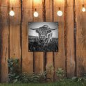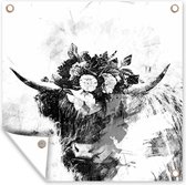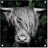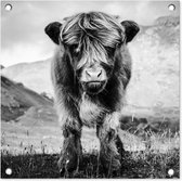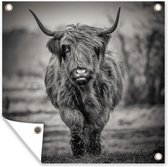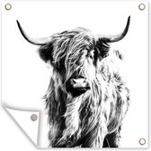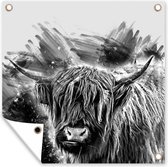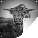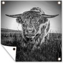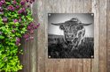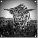 Close-up Scottish Highlander en affiche de jardin noir et blanc, toile lâche
