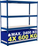 Ce support robuste est idéal pour stocker des objets exceptionnellement lourds. En combinaison avec le cadre en métal galvanisé, chacun des quatre niveaux d'étagères peut supporter jusqu'à 600 kilos, ce qui donne une capacité de charge totale du rack de stockage de 2,4 tonnes. La hauteur des étagères peut être réglée de manière flexible grâce au système enfichable.