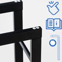 Particulièrement pratique: pour éviter que le bois ne tombe sur les côtés, il y a 3 traverses de chaque côté. Ils fournissent également une stabilité supplémentaire au support de bois de chauffage. De plus, l'étagère est équipée de 4 protecteurs de sol réglables en hauteur pour compenser les irrégularités.