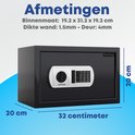 Le coffre-fort a une taille de 20x32x20 centimètres et une capacité de pas moins de 25,7 litres. Cela vous donne beaucoup d'espace pour tous vos documents, bijoux, argent et autres objets importants que vous souhaitez stocker dans le coffre-fort. De plus, le coffre-fort se compose de 2 couches, ce qui facilite le stockage de vos affaires.