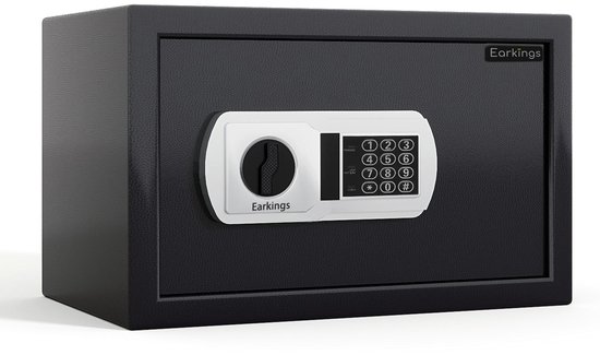 Ben cherchez un endroit sûr pour entreposer des objets de valeur et précieux? Pensez aux documents, bijoux, argent ou autres objets de valeur. Alors un coffre-fort Earkings est fait voor jou. Notre coffre-fort électronique est composé de matériaux haut de gamme, possède des parois épaisses et une serrure de sécurité contre le risque de cambriolage, ce qui le rend idéal pour ranger toutes vos affaires importantes !