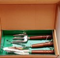 Coffret avec outils de jardin solides Manche en bois Vernis teck, 3 pièces * Handgemaakt *