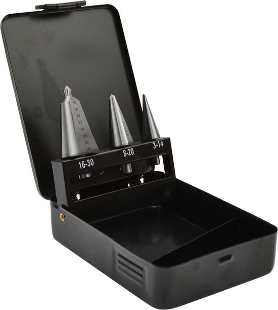 - Large gamme de tailles de forets : l'ensemble comprend des forets de 3 à 14 mm, 8 à 20 mm et 16 à 30 mm, adaptés à diverses applications.