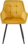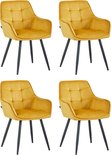 Colenis® - Chaise de salle à manger Oriana - Set de 4 - Jaune ocre - Velours - Industriel - Avec accoudoirs - Chaise