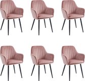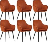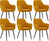 Colenis - Chaise de salle à manger Lavinia - Set de 6 - Jaune ocre - Velours - Industriel - Avec accoudoir
