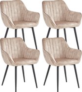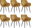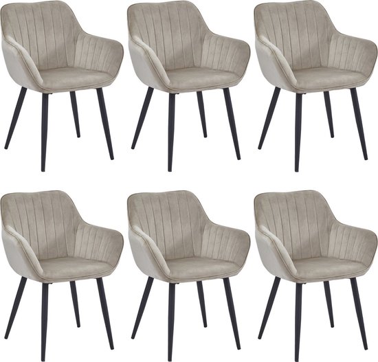 Colenis® - Chaise de salle à manger Luna - Set de 6 - Beige - Velours - Style industriel - Avec accoudoirs