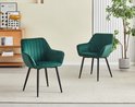 Colenis® - Chaise de salle à manger Luna - Set de 6 - Vert - Velours - Avec accoudoirs