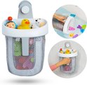 Très pratique dans la salle de bain! Vous pouvez retirer une grande quantité de jouets dès la sortie du bain. L'eau s'écoule par les trous en bas et les jouets peuvent s'égoutter. Après utilisation, il vous suffit de l'accrocher au crochet, que vous pouvez fixer au mur ou avec une bande adhésive (tient très bien sur nos carreaux). Je suis déjà convaincu!