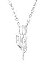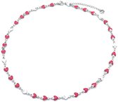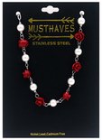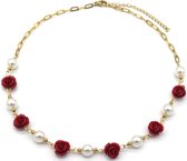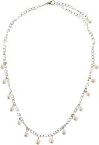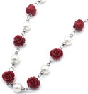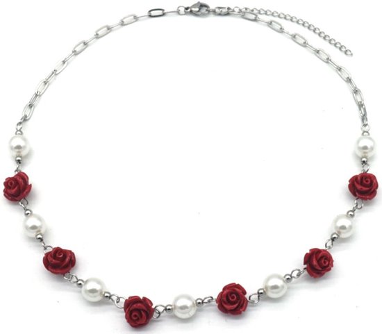 Collier avec perles et roses - Acier inoxydable - Longueur 44 cm - Couleur argent