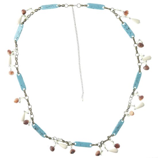 Collier Behave couleur or avec perles bleu marron et blanches 100 cm
