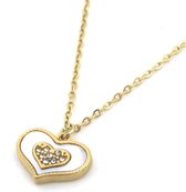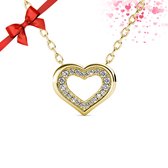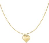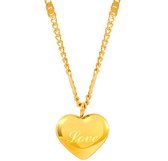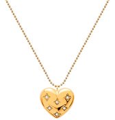 Un collier couleur or avec un pendentif coeur. Le coeur est entouré de 2 mains