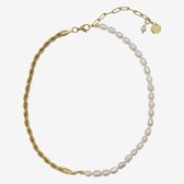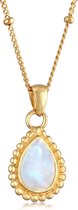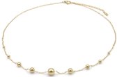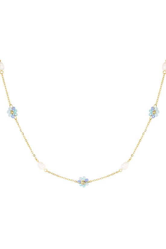 Collier de perles florales Classic - bleu/or - Yehwang - Collier - 39 + 5 cm - Acier inoxydable (ne se décolore pas !) - Or/ Blauw - Collier doré - Collier waterproof - Noël - Cadeau Noël - Cadeau Sinterklaas - Fête - Fête des Mères - Saint Valentin