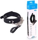 Ce collier de luxe vous donne une sensation de luxe grâce au matériau en silicone lisse et soyeux du collier. Inclus est une belle chaîne en argent et une sangle cloutée pour tenir. Que le jeu commence ! Complétez votre ensemble avec les menottes de luxe et les poignets de cheville de luxe. Fabriqué en silicone de haute qualité de la marque Kiotos en Europe.