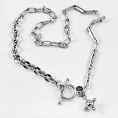 Ce collier pour femme, conçu par Dottolove, est une pièce de qualité réalisée en acier inoxydable et plaquée en or blanc 14 carats, lui conférant une finition élégante et durable. La chaîne a un design unique composé de grands maillons ovales, combinés à des maillons ronds, créant un style saisissant et distinctif.