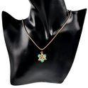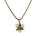 Le pendentif amovible a la forme d'une étoile et est composé d'anneaux en acier inoxydable plaqué or et de perles de cristal autrichien mat vert clair, créant un design unique et saisissant. Les perles de cristal autrichien vert clair et mat, appelées pierre de lune, ajoutent une touche d'élégance et de sophistication à l'ensemble et captent la lumière de manière captivante.