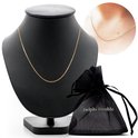 Notre collier longueur Gourmet peut être parfaitement combiné avec votre charm en or bien-aimé. C'est aussi un bijou à porter car la couche d'or est si épaisse que vous pouvez nager et vous doucher avec. Bref, un bijou que vous pourrez porter de jour comme de nuit avec grand plaisir. L'extérieur du collier est en 18 carats, c'est donc de l'or véritable qui repose sur votre peau. Cela signifie que vous ne souffrirez pas d'allergies et que l'article conservera longtemps sa couleur dorée. Ce collier peut être commandé dans les longueurs suivantes : 38,40,42,45,50,55,60,70 et 80 cm.