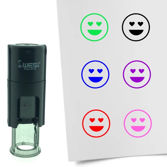Tampon CombiCraft ou tampon d'un amour Smiley. Le tampon contient de l'encre rouge et mesure 1 cm de rond. Le tampon peut être utilisé pour tamponner une carte d'épargne ou une carte de tampon. Le tampon contient un tampon encreur interne, donc aucun tampon encreur externe n'est requis.