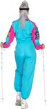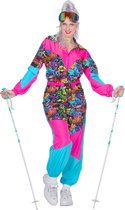 Belle salopette de ski rétro en tailles femmes. La combinaison de ski est dans le style imprimé des années 80 et possède une fermeture éclair sur le devant de la combinaison. Les manches et les jambes du pantalon sont élastiques pour que la combinaison soit bien ajustée. De plus, le costume a une ceinture et est de belle qualité. Joli costume à porter lors d'après ski, de soirées tyroliennes, de carnaval ou toute autre fête !