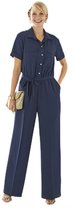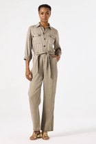 Combinaison en Denim avec col à revers et poche poitrine. Cette combinaison a des manches courtes, une jambe large, une fermeture à bouton et à glissière avec une ceinture à la taille et une coupe régulière. Cet article est composé à 100 % de coton. Better Cotton est une initiative qui s'engage à améliorer les conditions de l'industrie cotonnière dans le monde.