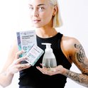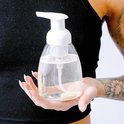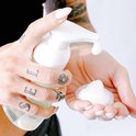 - Vissez la pompe sur le distributeur et appuyez une fois pour avoir une petite quantité de mousse dans la paume.