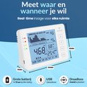 L'AirCO2ntrol 5000 est un moniteur de CO2 avec fonction d'enregistrement de données via carte SD. En plus de la teneur en CO2, l'appareil mesure la température et l'humidité de l'environnement et vous informe de la date et de l'heure. L'écran affiche la teneur actuelle en CO2 et une image avec des valeurs du passé et les valeurs maximales et minimales correspondantes. L'axe temporel du graphique à barres peut être réglé de manière variable sur une minute, une heure, un jour ou une semaine. Le graphique peut également afficher clairement les dernières valeurs de température et d'humidité mesurées. Un afficheur coloré vous permet d'interpréter les valeurs de CO2 en un coup d'œil et passe du vert au jaune au rouge en fonction de la qualité de l'air et du réglage des valeurs limites. Si une valeur maximale spécifiée est dépassée, un signal acoustique peut également avertir d'une concentration excessive de CO2. La fonction d'enregistreur étendue permet le stockage de plus d'un million d'enregistrements de données (CO2 / humidité / température avec date et heure). L'intervalle de mesure standard de cinq secondes peut être réglé individuellement. Les données stockées peuvent ensuite être évaluées facilement et rapidement via Microsoft Excel. L'alimentation électrique du Trusted Air s'effectue via une alimentation électrique fournie via un Cable USB.