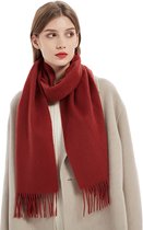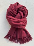 Cette écharpe rouge bordeaux est tissée en Italie à partir d'un fil doux 100% laine d'agneau. La taille généreuse garantit que vous pouvez le porter confortablement sur vos épaules. Il est chaud et doux et a de belles franges aux extrémités.