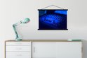 Console de mixage en plaque d'école lumière bleue lattes plates noir 90x60 cm - Tirage photo sur affiche textielposter (décoration murale salon / chambre)