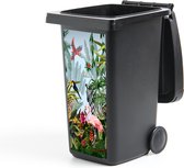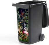 Sticker poubelle - Jungle - Animaux - Filles - Enfants - Garçons - Flamingo - Perroquet - Afvalcontainer