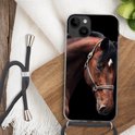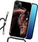Convient pour Apple Iphone 14 Plus - Coque bandoulière - Cheval - Légère - Licou - Siliconen - Bandoulière - Coque arrière avec cordon - Coque téléphone avec cordon - Coque avec corde