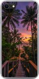 Convient pour coque iPhone SE 2020 - Coucher de soleil - Palmiers - Plage - Coque de téléphone en Siliconen