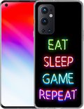 Convient pour la coque OnePlus 9 Pro - Gaming - Led - Citation - Eat sleep game répétition - Jeux - Siliconen Phone Case