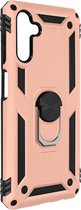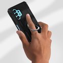 Coque arrière bi-matière antichoc pour Samsung Galaxy A32 5G. Cadre Stijf et intérieur en silicone. Anneau de retenue transformable en support vidéo. Compatible avec support magnétique. Fonctions accessibles.
