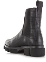 Bottines Chelsea courtes de la marque Copenhagen. Cette bottine basse est en cuir noir. Les deux côtés de la tige contiennent un élastique pour faciliter l'enfilage et le retrait. L'intérieur est en cuir et un comptoir robuste contribue à la facilité de la marche. La semelle épaisse en caoutchouc a un profil grossier pour une prise ferme.