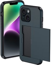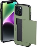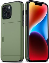 Coque adaptée pour iPhone 14 Plus avec porte-cartes - Coque rigide avec porte-cartes - Coque adaptée pour iPhone 14 Plus - Étui avec porte-cartes - Vert foncé