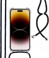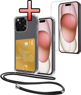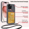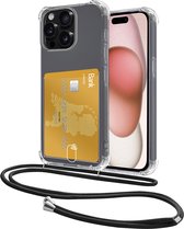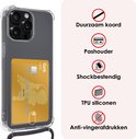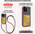 Coque adaptée pour iPhone 14 Pro Max avec porte-cartes et cordon résistant aux chocs, étui en Siliconen avec cordon de téléphone et porte-cartes - Transparent