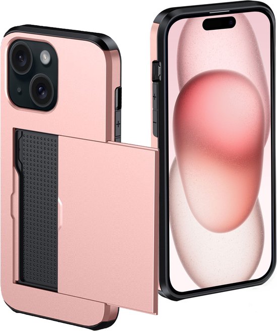 Coque adaptée pour iPhone 15 Plus, étui rigide avec porte-cartes, résistant aux chocs, avec porte-cartes – Or rose