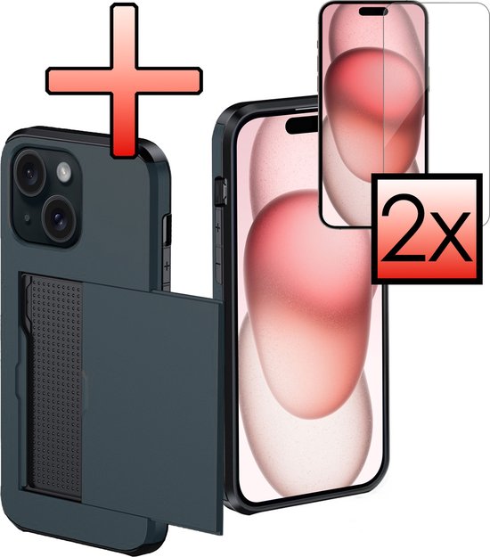 Coque rigide antichoc Plus iPhone 15 Plus avec porte-cartes et 2 iPhone de protection d'écran - Bleu foncé
