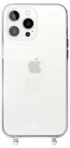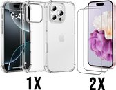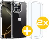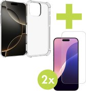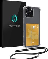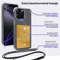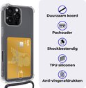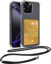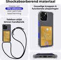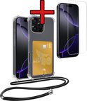 Coque adaptée pour iPhone 16 Pro Max avec cordon de téléphone et porte-cartes avec protecteur d'écran en Siliconen – Coque adaptée pour iPhone 16 Pro Max avec porte-cartes résistante aux chocs – Transparent
