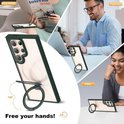 L'une des caractéristiques les plus remarquables de cet étui est le support d'anneau magnétique intégré. Cet anneau de support offre une adhérence supplémentaire, ce qui rend votre téléphone moins susceptible de glisser de votre main. De plus, l'anneau de support peut être utilisé comme support, vous permettant de regarder des vidéos, de diffuser des films et de passer des appels vidéo en mains libres. La fonction magnétique garantit que l'anneau reste fermement en place, mais est également facile à régler pour des angles de vision optimaux.