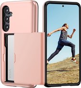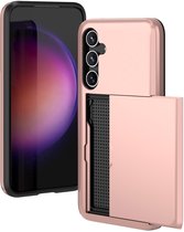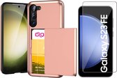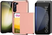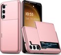 Coque Adaptée pour Samsung S23 Case Rose Goud - Coque arrière antichoc avec porte-cartes - Espace pour 2 cartes