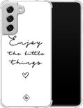 Coque antichoc Samsung Galaxy S21 FE - Enjoy life - Wit - Coque Rigide TPU Zwart - Texte - Casimoda
