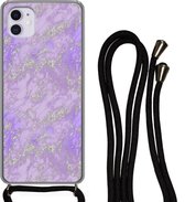 Coque avec cordon Adapté pour iPhone 12 Mini - Imprimé marbré - Argent - Luxe - Motif - Siliconen - Bandoulière - Coque arrière avec cordon - Coque téléphone avec cordon - Coque avec cordon