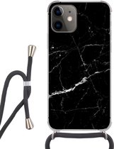 Coque avec cordon Adapté pour iPhone 12 Mini - Imprimé marbré - Violet - Luxe - Motif - Siliconen - Bandoulière - Coque arrière avec cordon - Coque téléphone avec cordon - Coque avec corde
