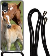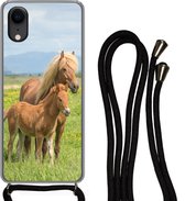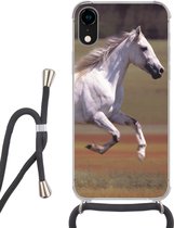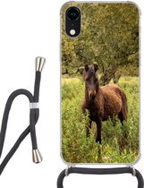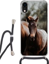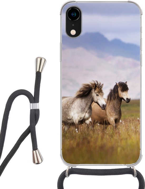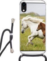 Coque avec cordon Adapté pour iPhone XR - Paarden - Herbe - Montagnes - Siliconen - Bandoulière - Coque arrière avec cordon - Coque téléphone avec cordon - Coque avec cordon