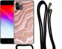 Coque avec cordon iPhone 11 Pro - Imprimé marbré - Rouge - Wit - Siliconen - Bandoulière - Coque arrière avec cordon - Coque pour téléphone avec cordon - Coque avec corde