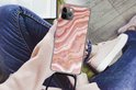 Texture marbre rouge et rose avec rayures dorées.