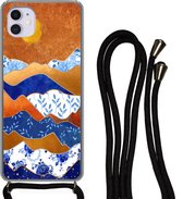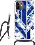 Coque avec cordon iPhone 12 - Bleu de Delft - Design - Luxe - Siliconen - Bandoulière - Coque arrière avec cordon - Coque pour téléphone avec cordon - Coque avec corde