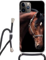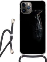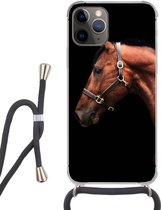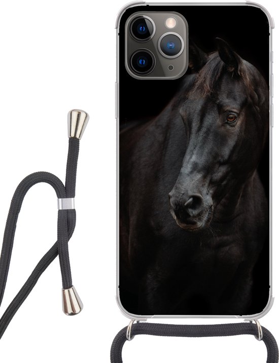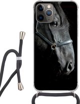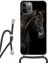Coque avec cordon iPhone 12 Pro - Cheval - Légère - Zwart - Siliconen - Bandoulière - Coque arrière avec cordon - Coque pour téléphone avec cordon - Coque avec corde